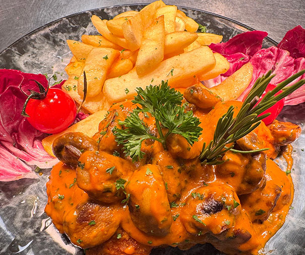 Treten Sie ein in unsere modern gestalteten Räumlichkeiten und erleben Sie bei uns ein unvergessliches kulinarisches Abenteuer. Entdecken Sie unsere speziell zubereiteten Steaks und eine vielfältige internationale Küche, die sowohl Fleischliebhaber als auch Vegetarier gleichermaßen begeistern wird.